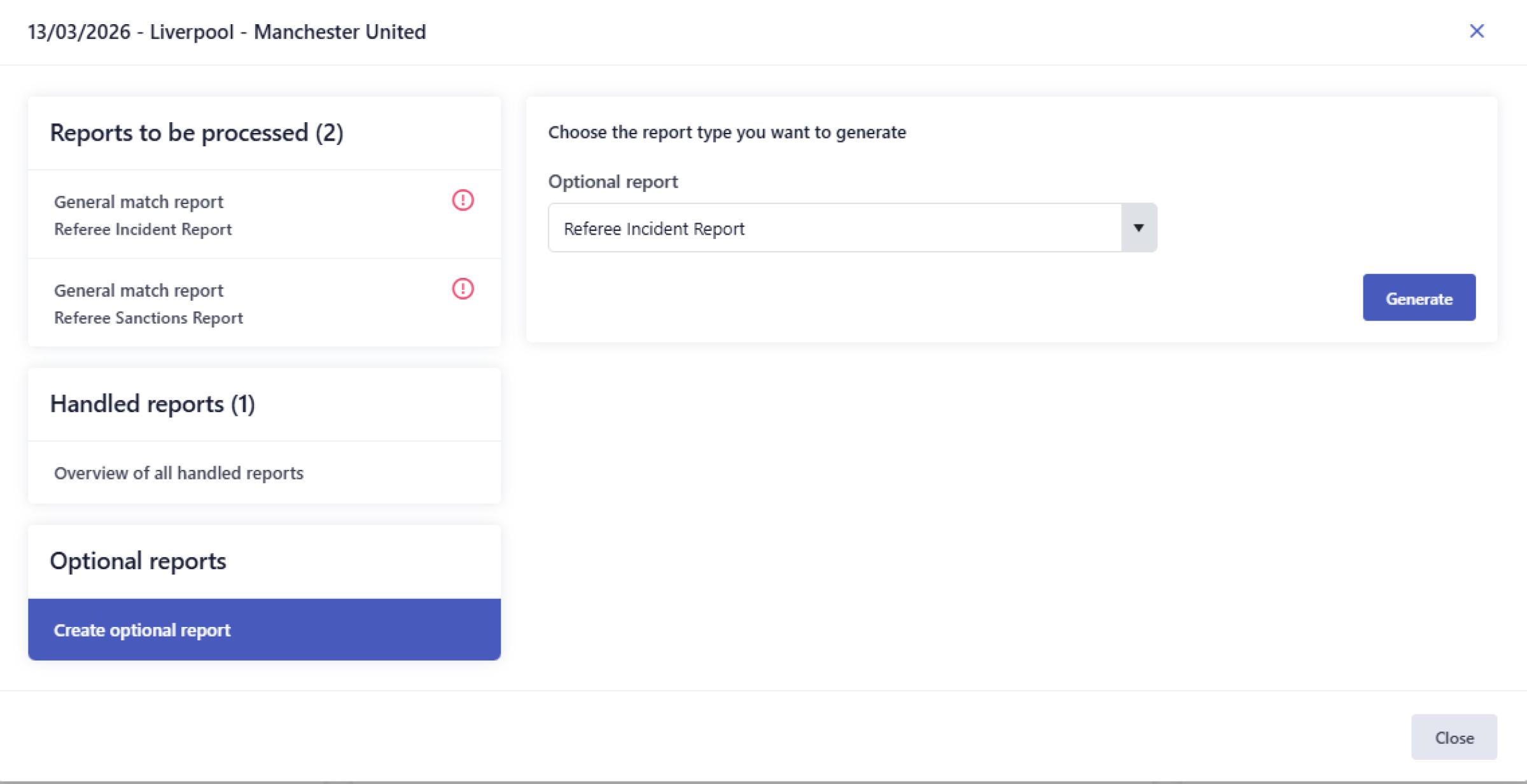 Les rapports optionnels peuvent être générés par les officiels quand ils en ont besoin, par exemple au cas où il y aurait un incident nécessitant une escalation dans la fédération.